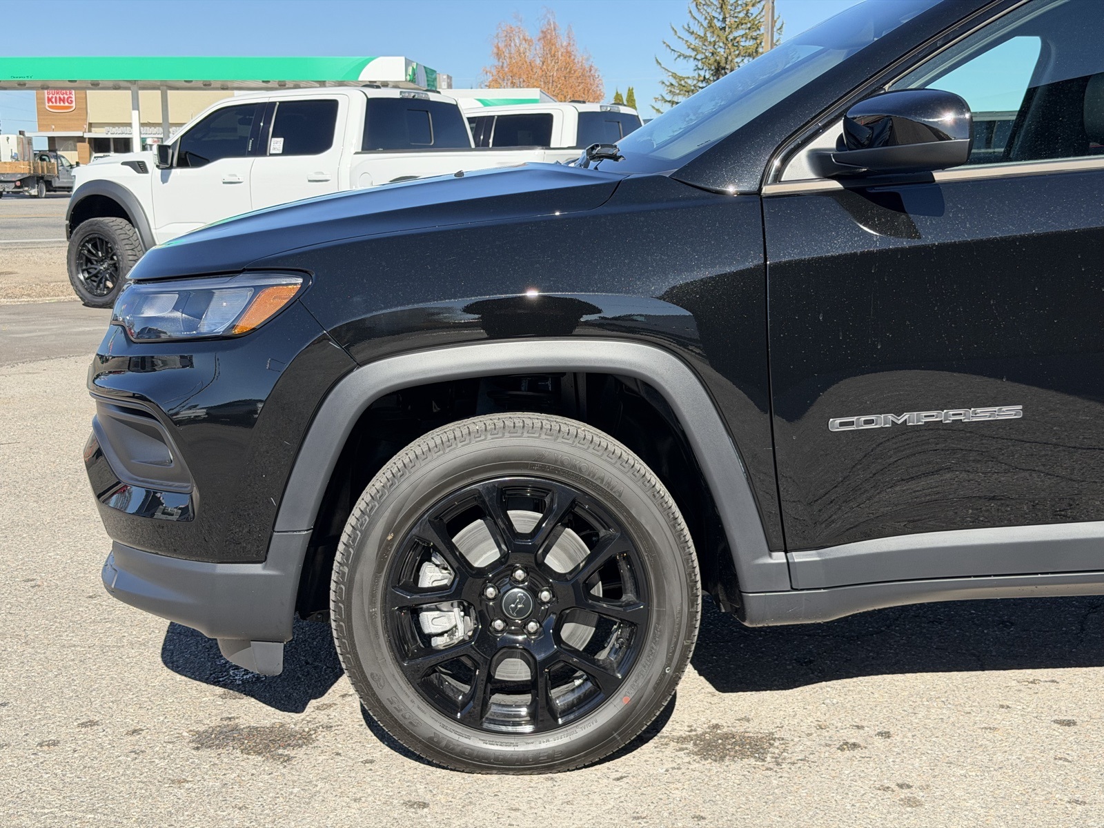 - 18 x 7-inch front and rear black aluminum wheels