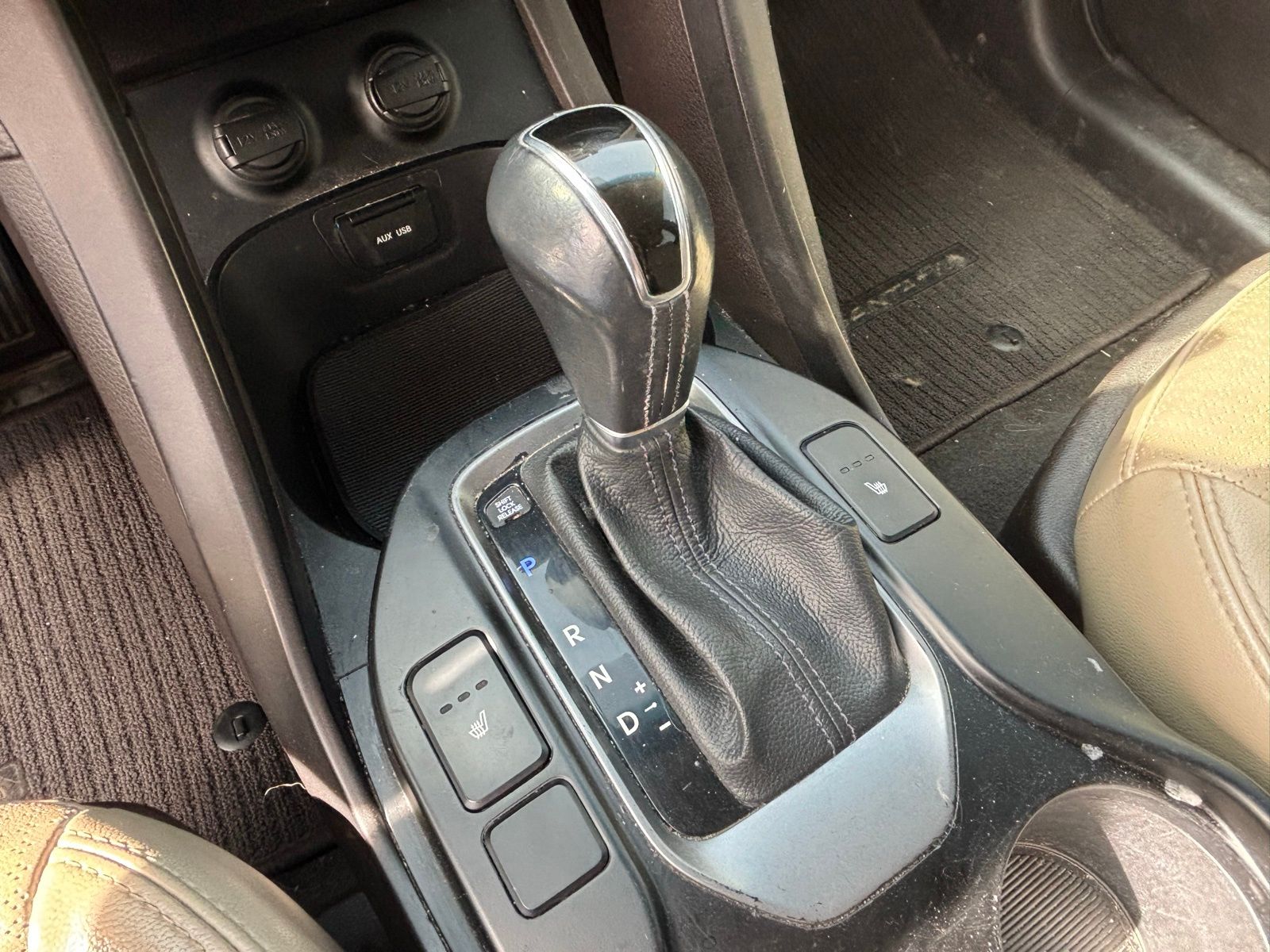 - Leather and piano black gear shifter material