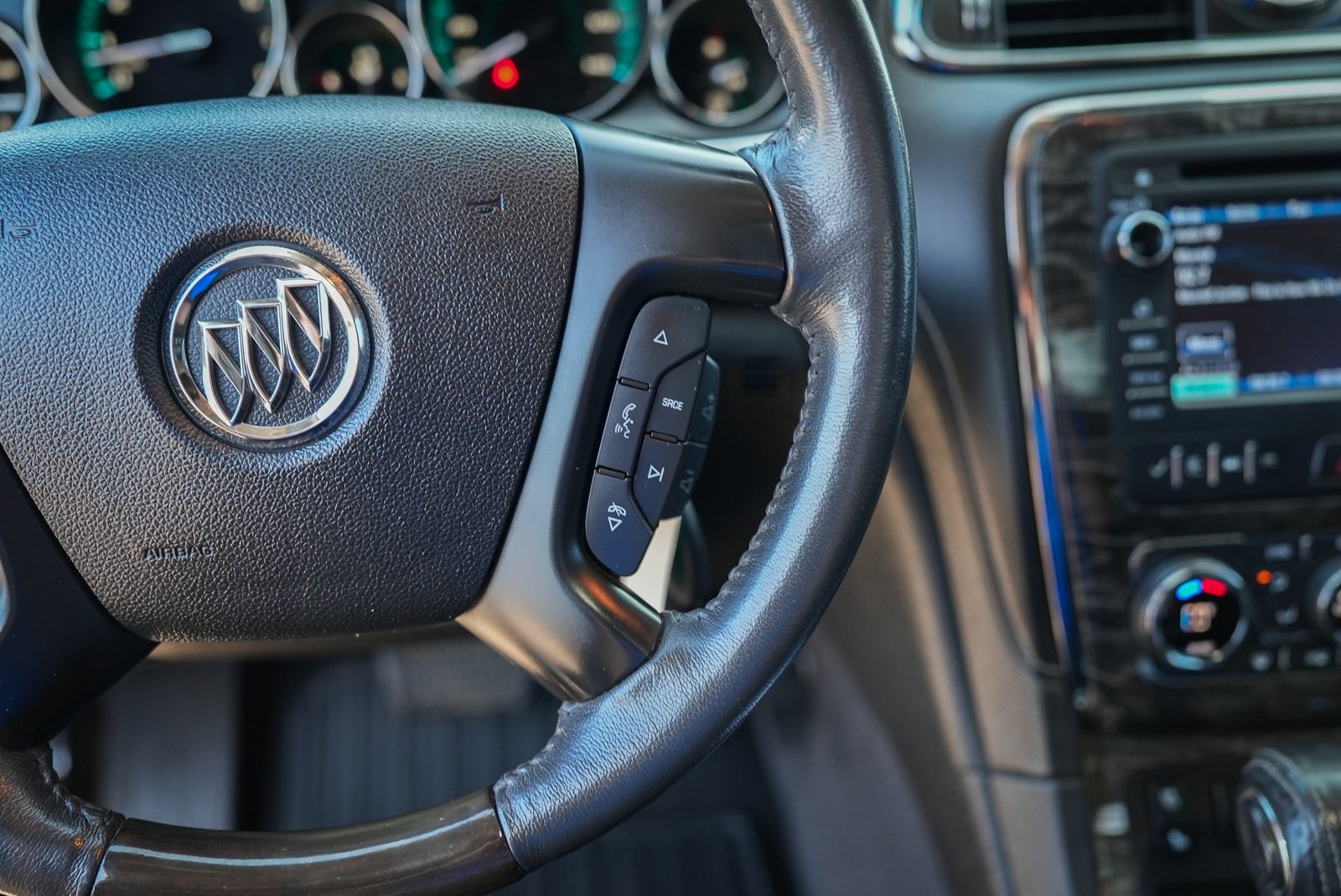 - Leather and genuine wood steering wheel