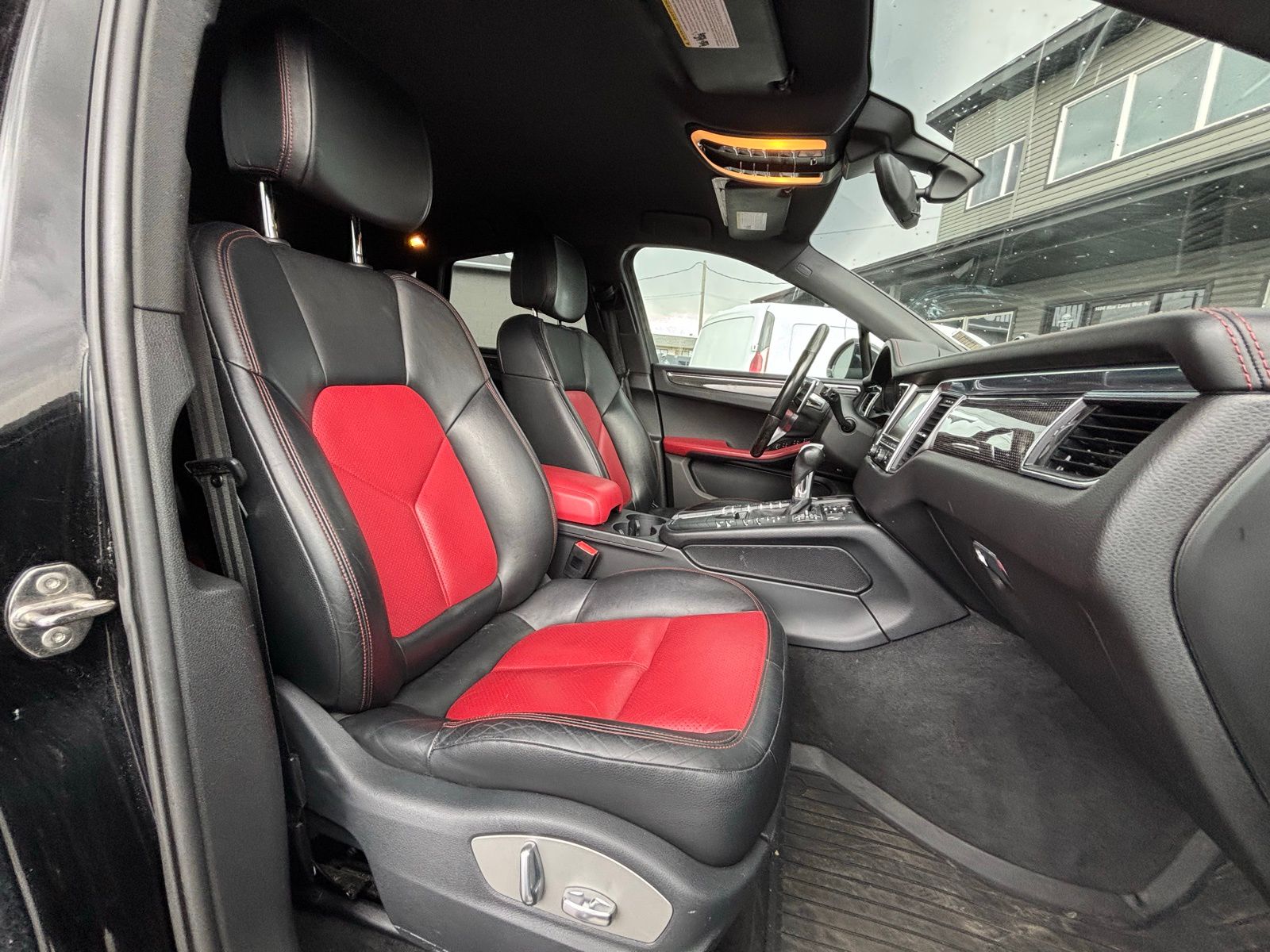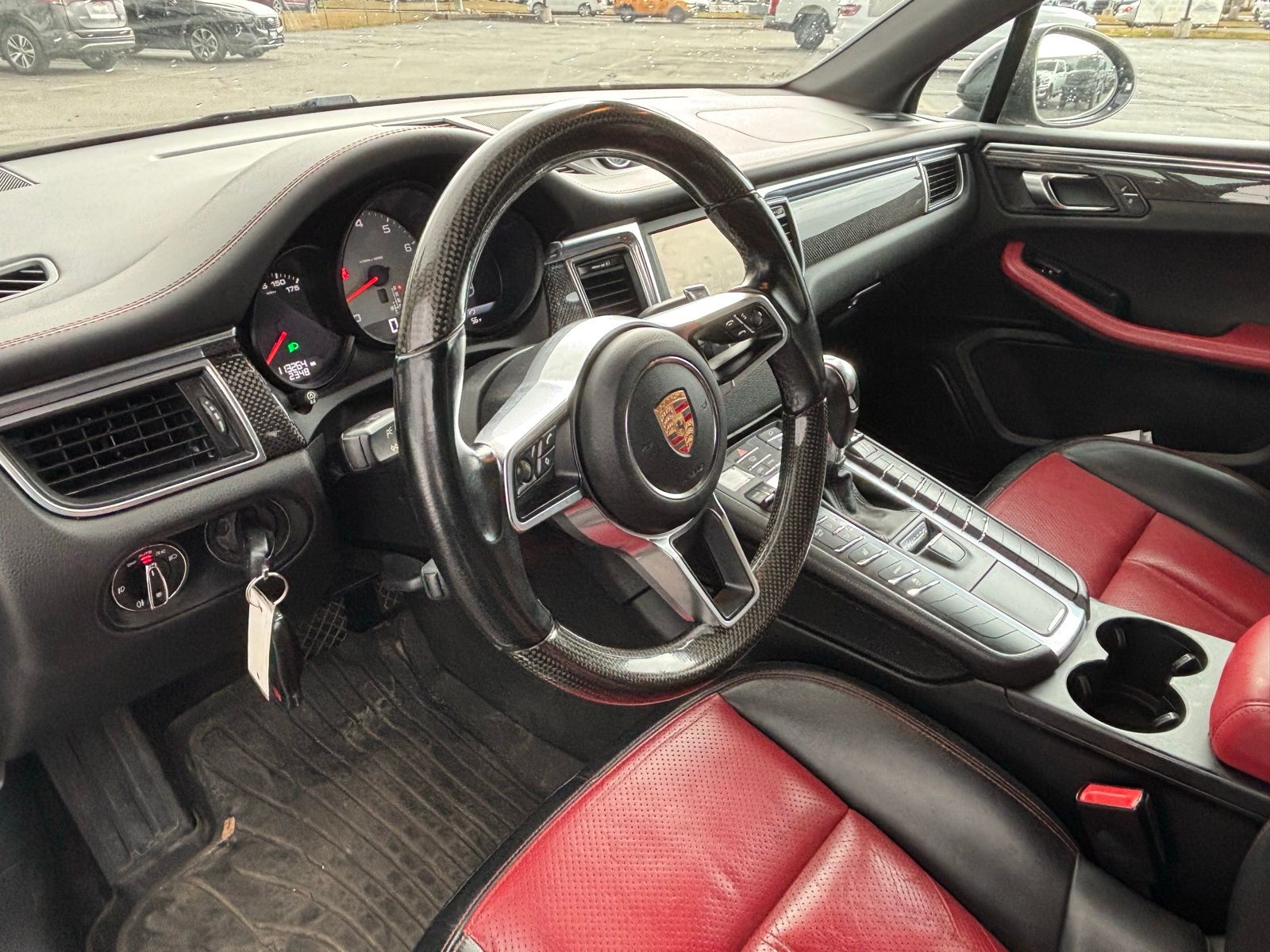 This Macan S is well equipped with premium features including the Black/Garnet Red leather interior package, carbon fiber interior trim, heated front seats, heated multifunction steering wheel, and the premium BOSE surround sound system. The aggressive stance is highlighted by the 20-inch RS Spyder Design wheels and high-gloss black exterior package, while the trailer hitch and roof rails add everyday versatility. With Porsche performance, luxury finishes, and distinctive styling, the Macan S stands out among luxury compact SUVs.