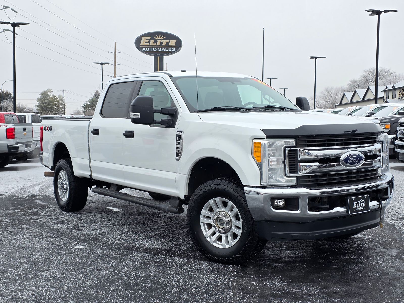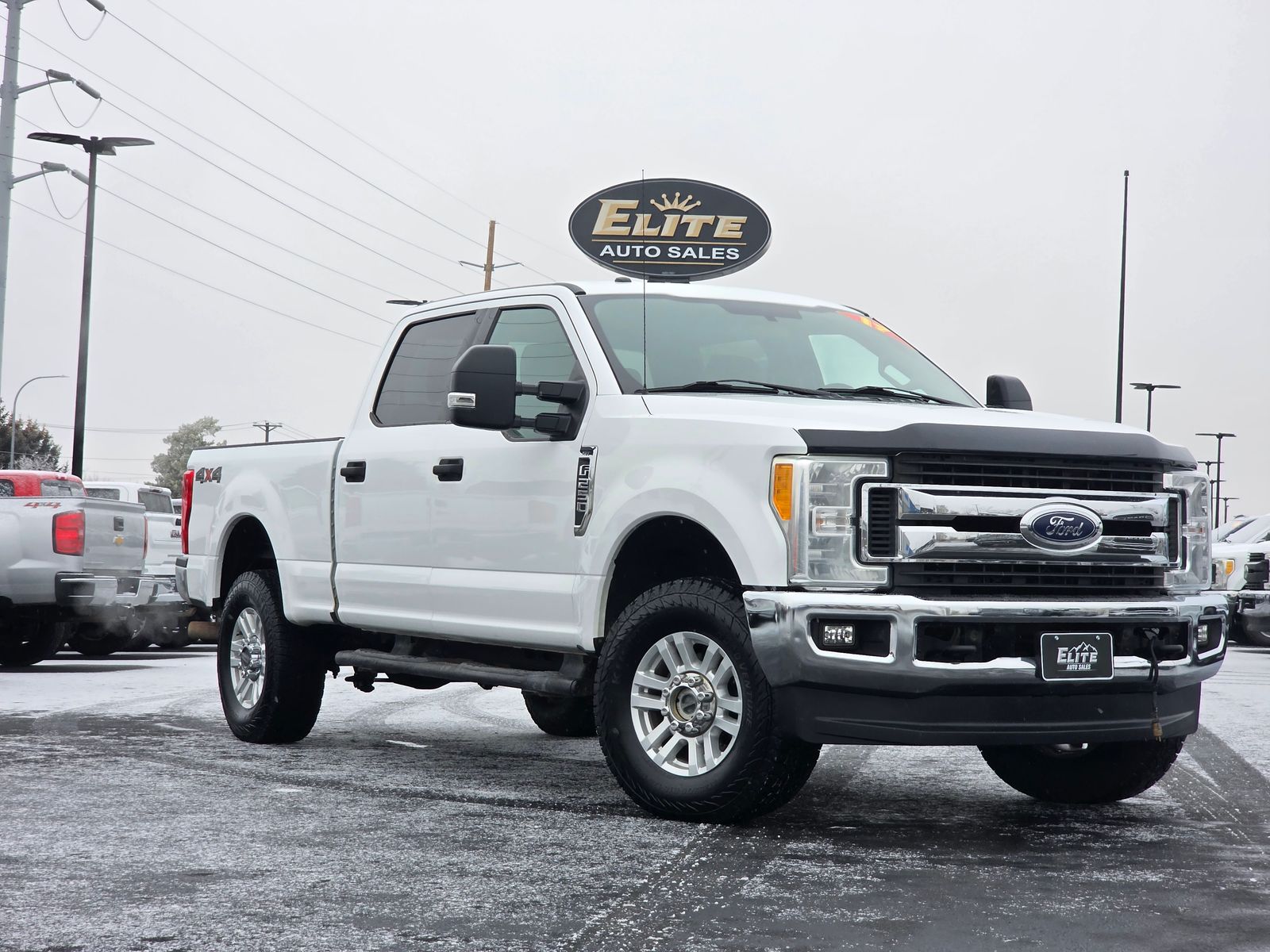 White 2017 Ford F-250SD XLT 4D Crew Cab 2017 4WD, ABS brakes, Alloy wheels, Compass, Electronic Stability Control, Heated door mirrors, Illuminated entry, Low tire pressure warning, Order Code 603A, Remote keyless entry, Traction control. XLT 6-Speed Automatic Ford 6.2L V8 EFI SOHC 16V Flex Fuel F-250SD 4WD