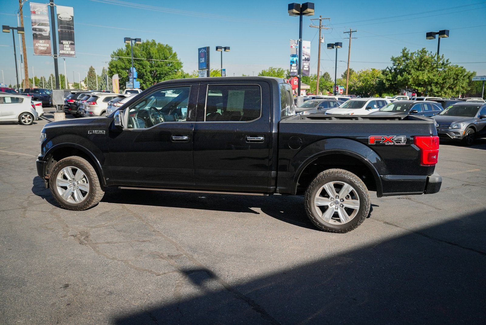 4WD 17/23 City/Highway MPG 10-Speed Automatic 4D SuperCrew 3.5L V6 EcoBoost CARFAX One-Owner. 4WD. Odometer is 37642 miles below market average! F-150 Shadow Black 2018 2018 Ford F-150 Platinum 4X4 FX4 4X4 FX4 Platinum Ford