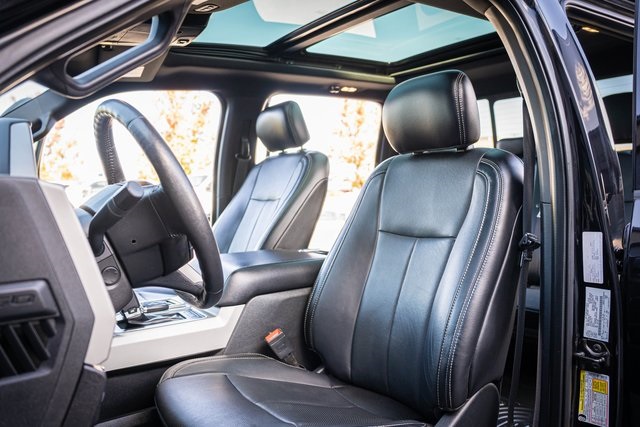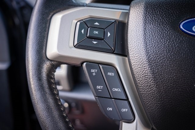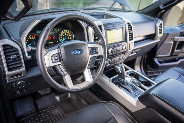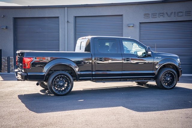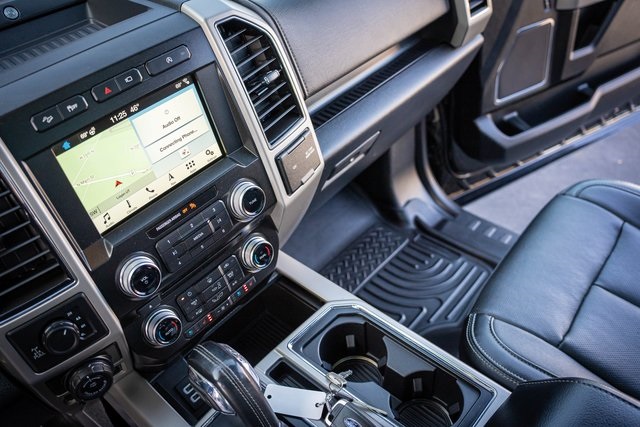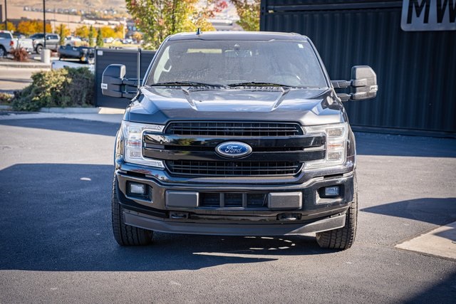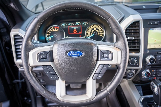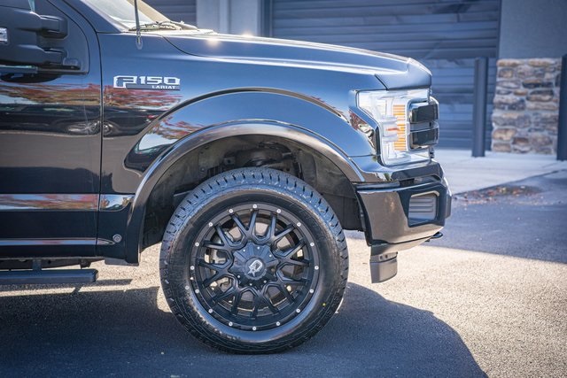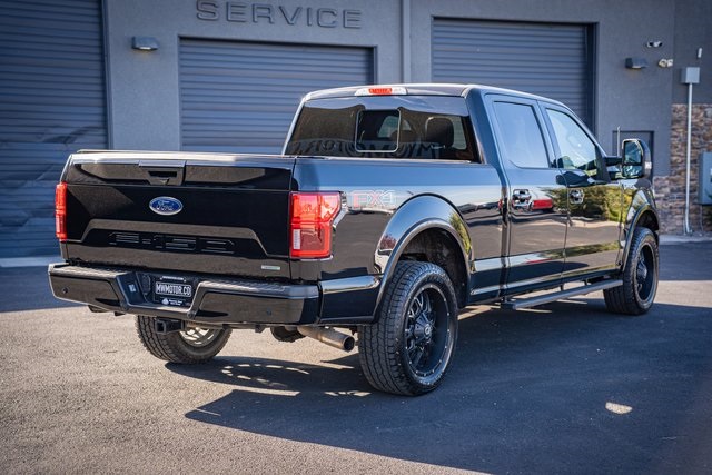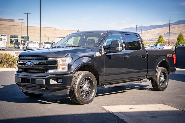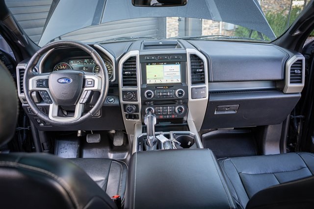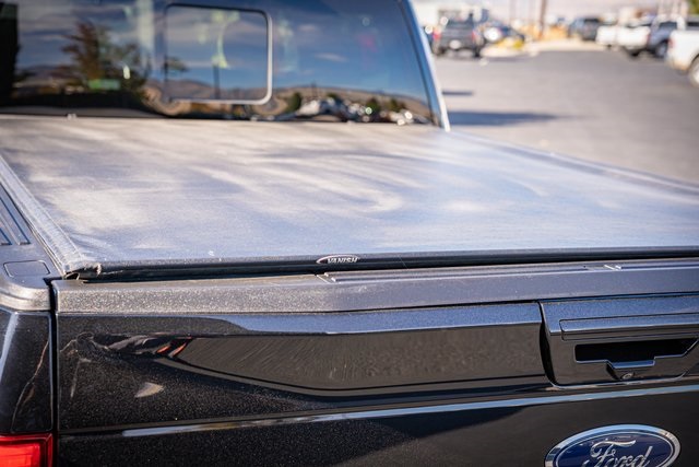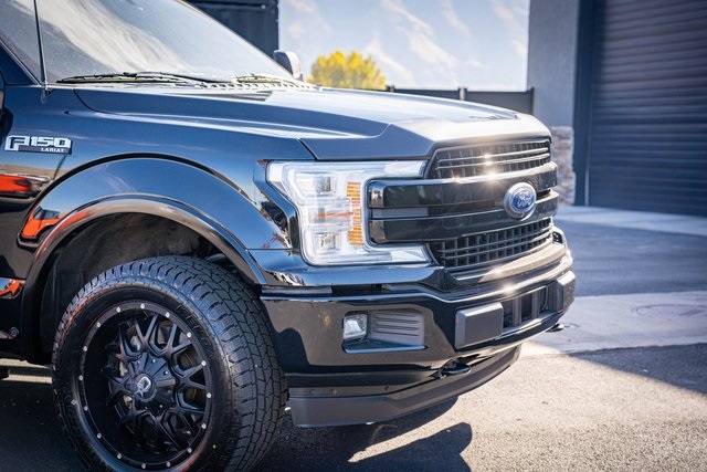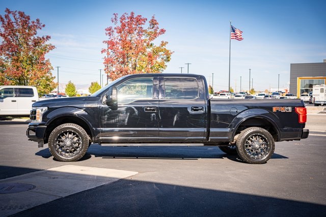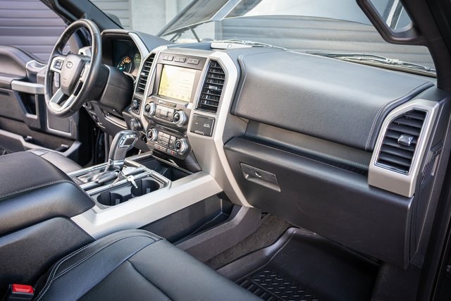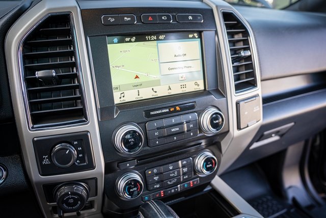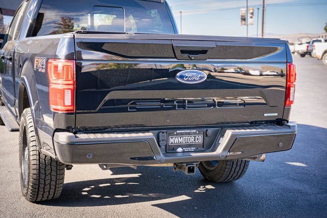 * 2018 KBB.com Brand Image Awards * 2018 KBB.com 10 Most Awarded Brands 4D SuperCrew Clean CARFAX. 2018 Ford F-150 Lariat 2018 10-Speed Automatic 4WD, 110V/400W Outlet, 2nd Row Heated Seats, ABS brakes, Active Park Assist, Alloy wheels, Automatic High Beam w/Rain-Sensing Wipers, BLIS Blind Spot Information System, Chrome 2-Bar Grille w/4 Minor Bars, Chrome Angular Step Bars, Chrome Door & Tailgate Handles w/Body-Color Bezel, Chrome Skull Caps on Exterior Mirrors, Class IV Trailer Hitch Receiver, Compass, Electronic Locking w/3.55 Axle Ratio, Electronic Stability Control, Equipment Group 502A Luxury, Extended Range 36 Gallon Fuel Tank, Front dual zone A/C, Heated door mirrors, Heated front seats, Heated Steering Wheel, Higher-Capacity Radiator, Higher-Power Cooling Fans, Illuminated entry, Integrated Trailer Brake Controller, Lane-Keeping System, Lariat Chrome Appearance Package, Leather-Trimmed Bucket Seats, LED Sideview Mirror Spotlights, Low tire pressure warning, Max Trailer Tow Package, Power Glass Sideview Mirr w/Chrome Skull Caps, Power Tilt/Telescoping Steering Column w/Memory, Pro Trailer Backup Assist, Quad Beam LED Headlamps & LED Taillamps/Fog Lamps, Radio: B&O Play Premium Audio System, Remote keyless entry, Remote Start System w/Remote Tailgate Release, Reverse Sensing System, Single-Tip Chrome Exhaust, SYNC Connect, Technology Package, Traction control, Universal Garage Door Opener, Upgraded Front Stabilizer Bar, Voice-Activated Touchscreen Navigation System, Wheels: 18" Chrome-Like PVD, Windshield Wiper De-Icer. Lariat Ford F-150 3.5L V6 EcoBoost Shadow Black 17/23 City/Highway MPG