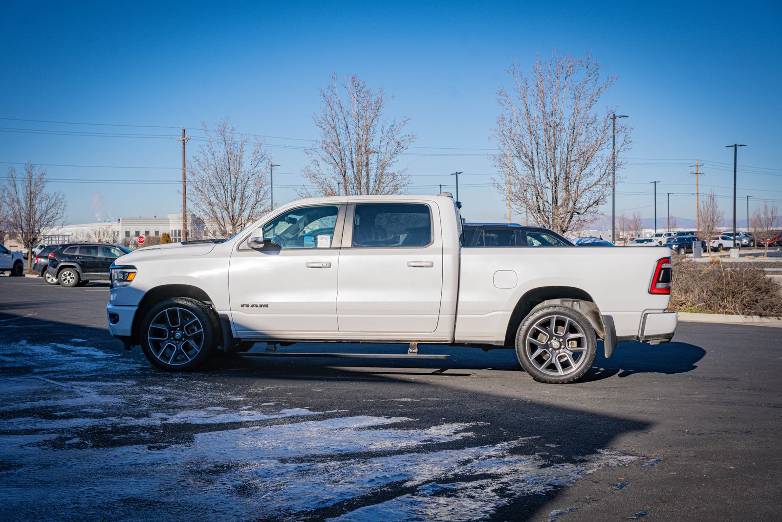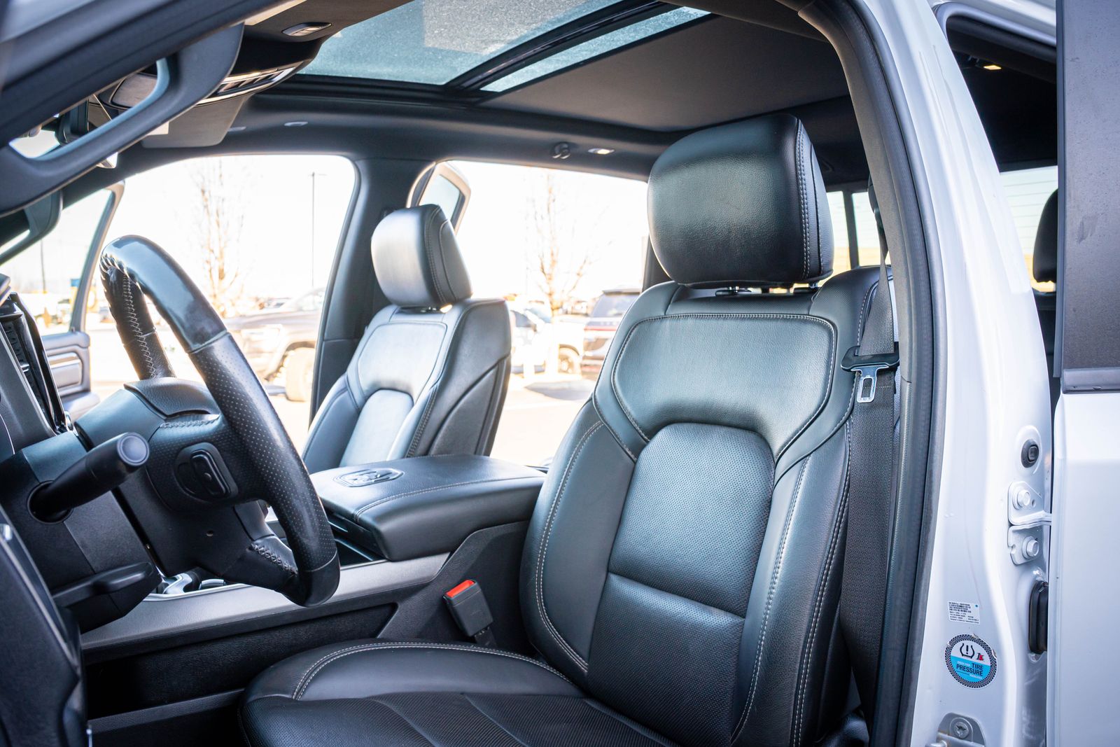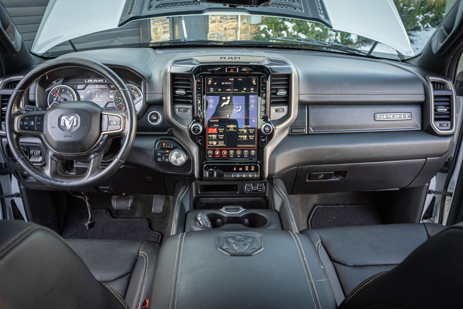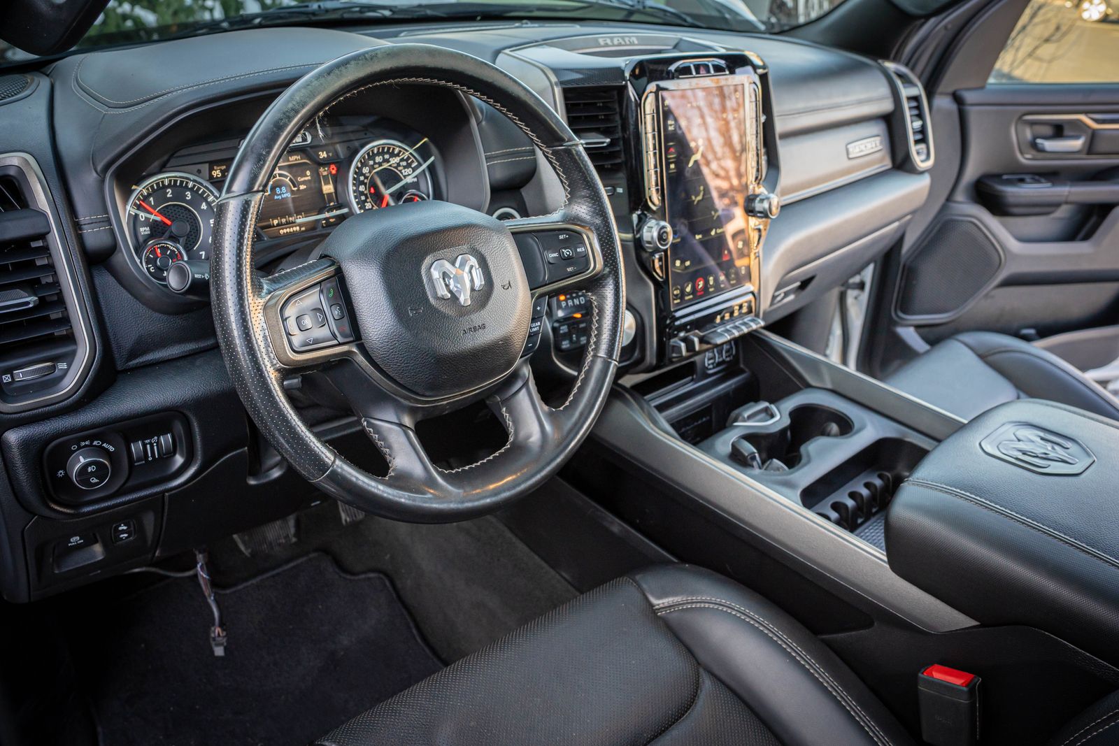 CARFAX One-Owner. 4D Crew Cab Clean CARFAX. 2021 Ram 1500 Sport 2021 8-Speed Automatic 115V Rear Auxiliary Power Outlet, 9 Alpine Speakers w/Subwoofer, ABS brakes, Alloy wheels, Alpine Leather & Sound Group, Comfort & Convenience Group, Compass, Digital Rearview Mirror w/Autodim, Driver Seat w/Memory Setting, Electronic Stability Control, Front Heated Seats, Gloss Black Grille w/Black Surround, Heads-Up Display, Heated door mirrors, Heated Exterior Mirrors, Heated front seats, Illuminated entry, Leather-Faced Front Vented Bucket Seats, LED CHMSL Lamp, Level 2 Equipment Group, Low tire pressure warning, Media Hub w/2 USB Charging Ports, Night Edition, Park-Sense Front & Rear Park Assist, ParkView Rear Back-Up Camera, Power 4-Way Front Passenger Lumbar Adjust, Power 8-Way Adjustable Front Seats, Radio: Uconnect 4C Nav w/12" Display, Rain-Sensing Windshield Wipers, Rear Underseat Compartment Storage, Remote keyless entry, Remote Proximity Keyless Entry, Remote Tailgate Release, Second-Row Heated Seats, Security Alarm, Technology Group, Traction control, Wheels: 22" x 9" Black Forged Aluminum, Wireless Charging Pad. Sport Ram 1500 White