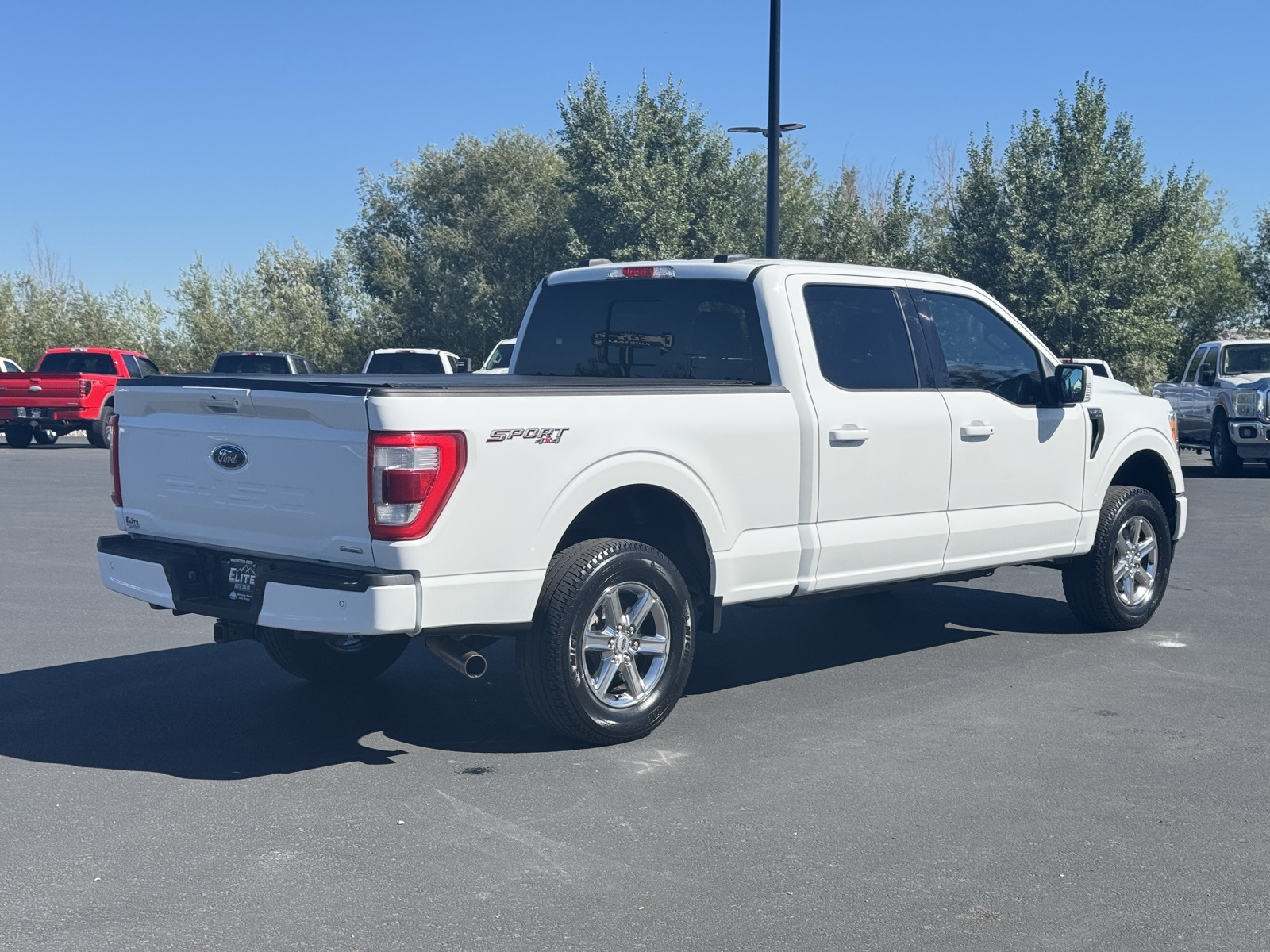 White 2022 Ford F-150 Lariat 4D SuperCrew 2022 4WD, ABS brakes, Alloy wheels, Compass, Electronic Locking w/3.55 Axle Ratio, Electronic Stability Control, Equipment Group 501A Mid, Front dual zone A/C, Heated door mirrors, Heated front seats, Illuminated entry, Low tire pressure warning, Onboard 400W Outlet, Radio: B&O Sound System by Bang & Olufsen, Remote keyless entry, Traction control, Universal Garage Door Opener. Lariat 10-Speed Automatic Ford 3.5L V6 EcoBoost F-150 18/23 City/Highway MPG 4WD