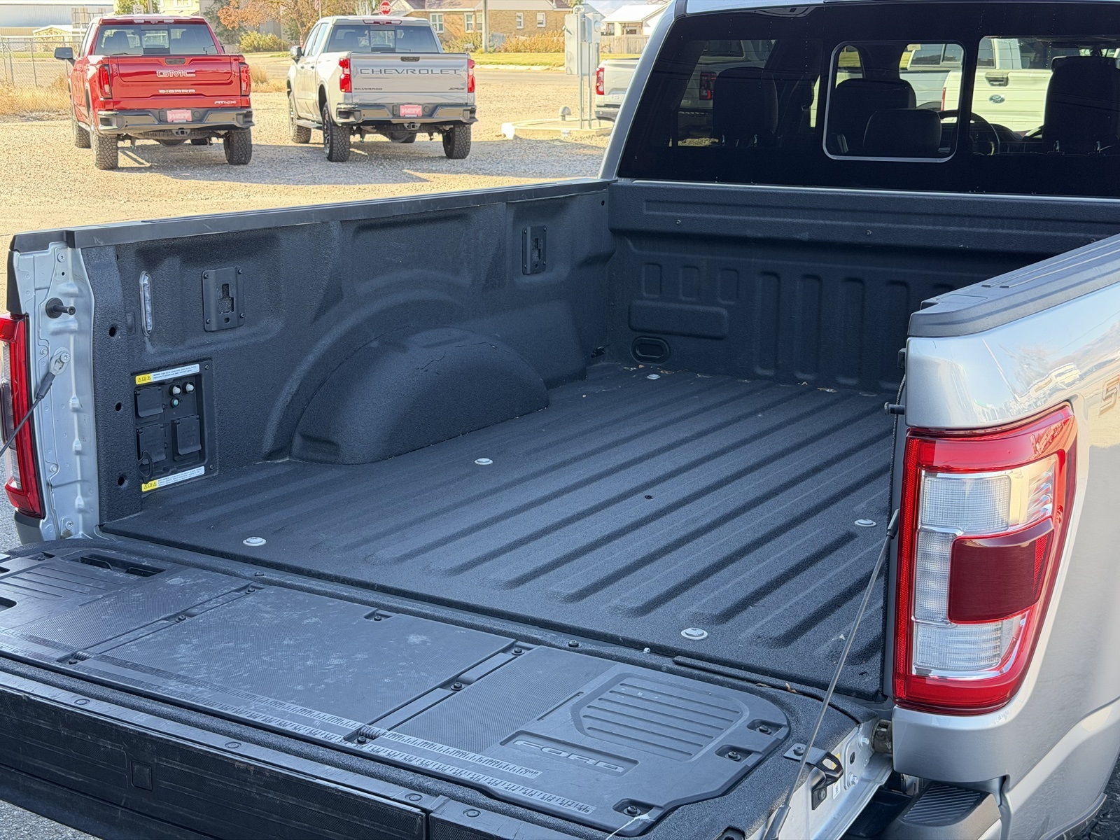 CARFAX One-Owner. 4D SuperCrew Iconic Silver Metallic 23/23 City/Highway MPG 4WD 3.5L PowerBoost Full-Hybrid V6 Ford F-150 Lariat 3.5L PowerBoost Full-Hybrid V6, 4WD, Accent-Color Angular Step Bars, Bed Utility Package, Body-Color Front & Rear Bumpers, Box Side Decals, BoxLink, Chrome Single-Tip Exhaust, Class IV Trailer Hitch Receiver, Dark 2-Bar & 1 Minor Bar Style Grille, Equipment Group 501A Mid, Extended Range 36 Gallon Fuel Tank, Integrated Trailer Brake Controller, Lariat Sport Appearance Package, LED Box Lighting, Max Trailer Tow Package, Onboard 400W Outlet, Power Tailgate, Pro Trailer Backup Assist, Radio: B&O Sound System by Bang & Olufsen, Tailgate Step w/Tailgate Work Surface, Universal Garage Door Opener, Wheels: 18" 6-Spoke Machined Aluminum. 2022 10-Speed Automatic 2022 Ford F-150 Lariat