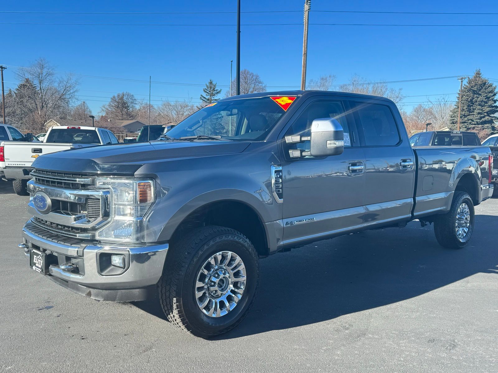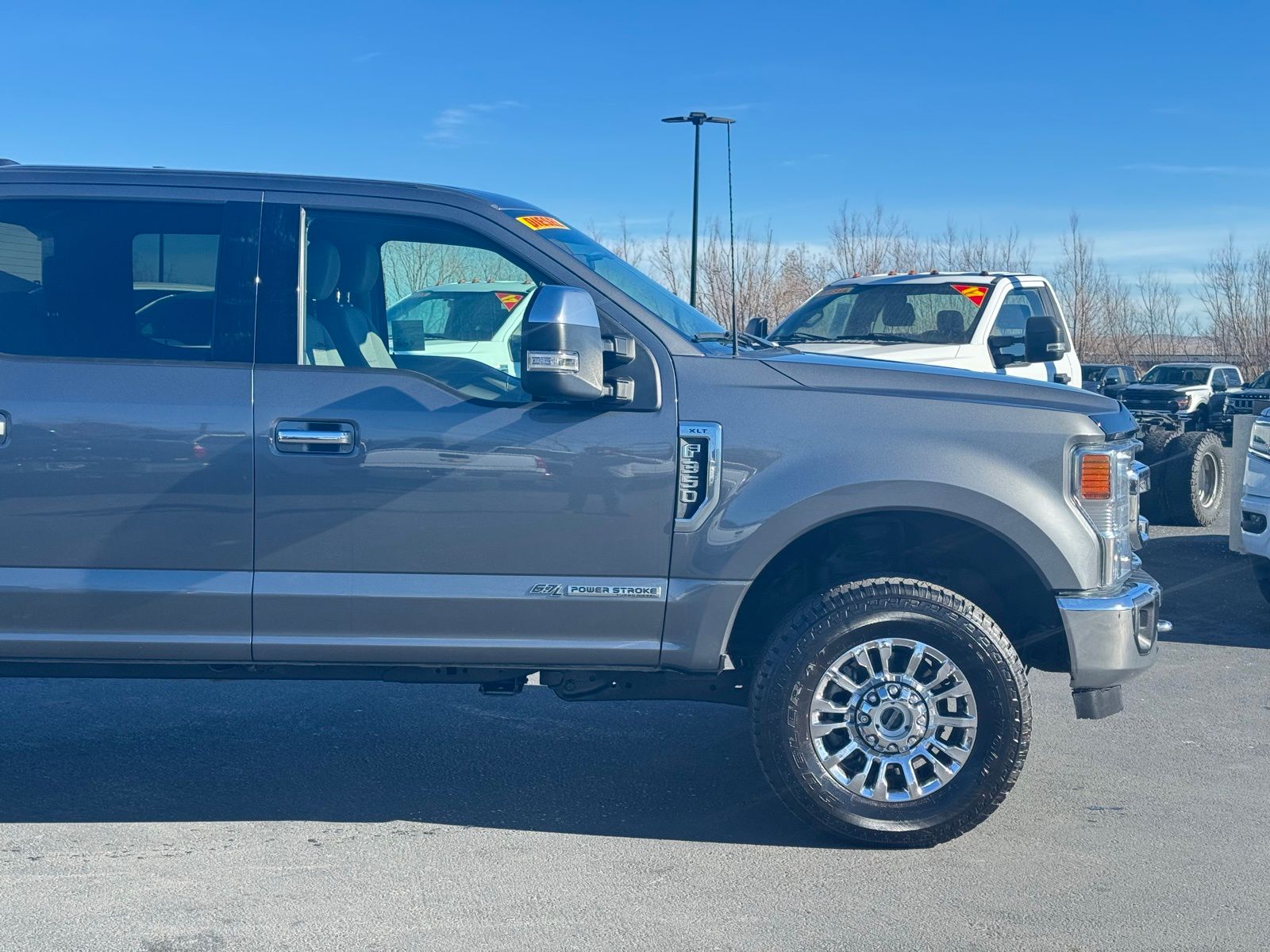 Gray 2022 Ford F-350SD XLT 4D Crew Cab 2022 4WD, 6" Angular Bright Polished Step Bars, 8-Way Power Driver's Seat, ABS brakes, Alloy wheels, Autolock/Auto Unlock, Body-Color Door Handles w/Chrome Insert, Chrome Exhaust Tip, Compass, Electronic Stability Control, Electronic-Locking w/3.31 Axle Ratio, Halogen Fog Lamps, Heated door mirrors, Heated Driver & Passenger Seats, Illuminated entry, Low tire pressure warning, Remote keyless entry, Reverse Sensing System, SecuriCode Driver's Side Keyless Entry Keypad, Traction control, Unique Chrome Mirror Caps, Wheels: 18" Chrome PVD Aluminum, XLT Premium Package. XLT 10-Speed Automatic Ford Power Stroke 6.7L V8 DI 32V OHV Turbodiesel F-350SD 4WD