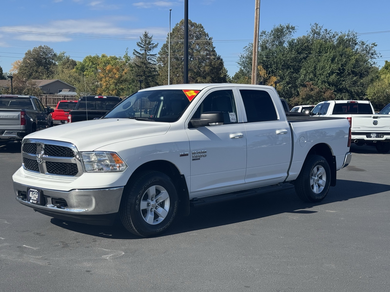 Bright White Clearcoat 2022 Ram 1500 Classic SLT 4D Crew Cab 2022 2-Door Passive Entry, Front Door Locks, 2nd Row In Floor Storage Bins, Auto-Dimming Exterior Mirrors, Auto-Dimming Rear-View Mirror, Black Exterior Mirrors, Body Color Door Handles, Cluster 7.0" TFT Color Display, Exterior Mirrors Courtesy Lamps, Exterior Mirrors w/Heating Element, Exterior Mirrors w/Supplemental Signals, Glove Box Lamp, Heated Front Seats, Heated Seats & Wheel Group, Heated Steering Wheel, Humidity Sensor, Leather Wrapped Steering Wheel, LED Bed Lighting, Luxury Group, Overhead Console w/Garage Door Opener, Power Heated Fold-Away Mirrors, Power-Folding Mirrors, Protection Group, Pushbutton Start, Rear Dome w/On/Off Switch Lamp, Remote Start & Security Alarm Group, Security Alarm, Steering Wheel Mounted Audio Controls, Sun Visors w/Illuminated Vanity Mirrors, Technology Package I, Tow Hooks, Universal Garage Door Opener. SLT 8-Speed Automatic Ram HEMI 5.7L V8 Multi Displacement VVT 1500 Classic 15/21 City/Highway MPG 4WD