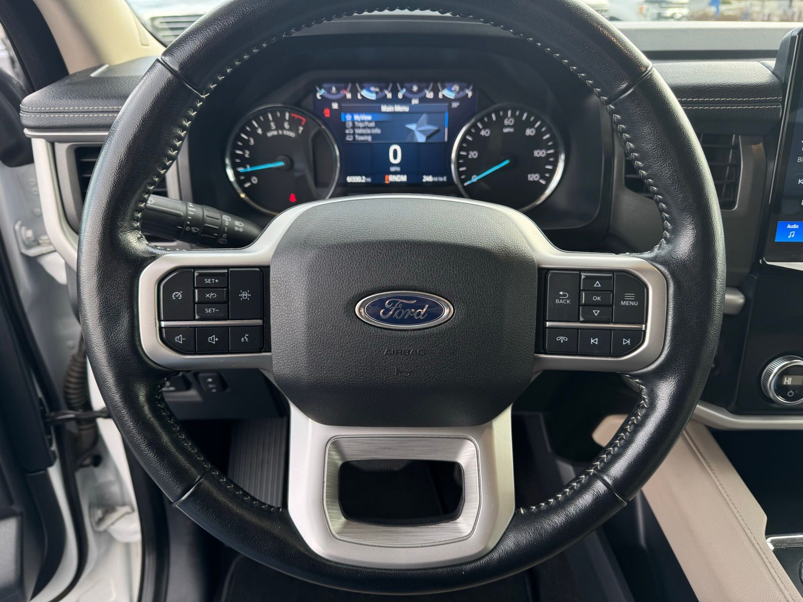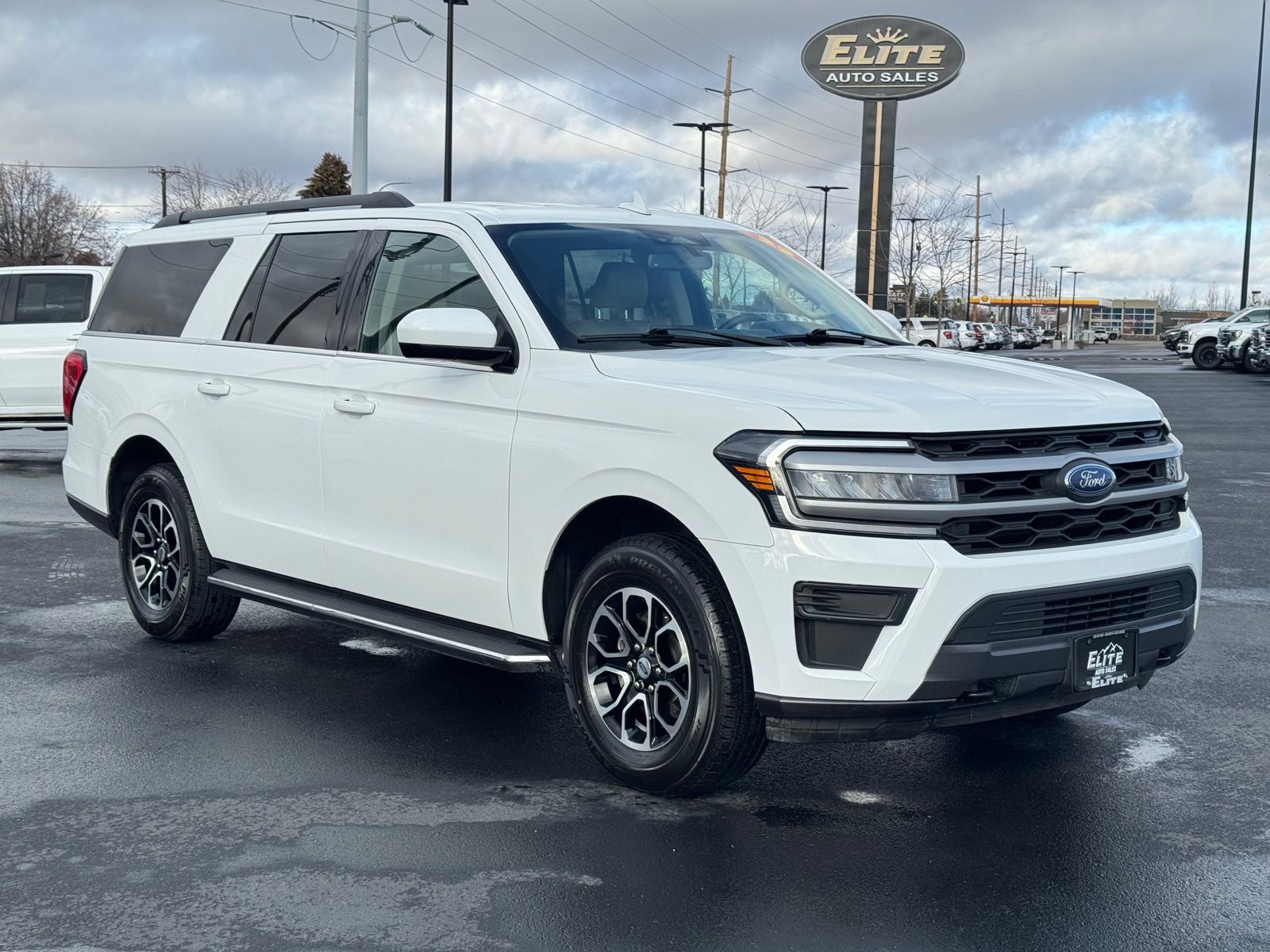 White 2023 Ford Expedition Max XLT 4D Sport Utility 2023 110V/150W AC Power Outlet, 2nd Row Power-Folding Captain's Chairs, 3rd Row Vinyl Power-Folding Head Restraints, 4-Door Intelligent Access (Lock/Unlock), Accent Color Painted Rear Bumper, ActiveX-Trimmed 1st & 2nd Row Seats, Advanced Security Pack, Ambient Lighting, Bright Chrome Plated Accent Platform Running Boards, Equipment Group 202A High Package, Heated Steering Wheel, Heated/Ventilated Front Seats, Power Liftgate, Power Tilt/Telescopic Steering Wheel w/Memory, Power-Adjustable Pedals w/Memory, Power-Folding Sideview Mirrors w/Autofold, Remote Start, SecuriCode Keyless Entry Keypad, Wireless Charging Pad. XLT 10-Speed Automatic Ford EcoBoost 3.5L V6 GTDi DOHC 24V Twin Turbocharged Expedition Max 16/22 City/Highway MPG 4WD