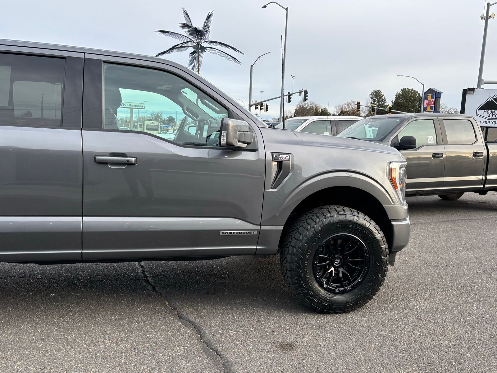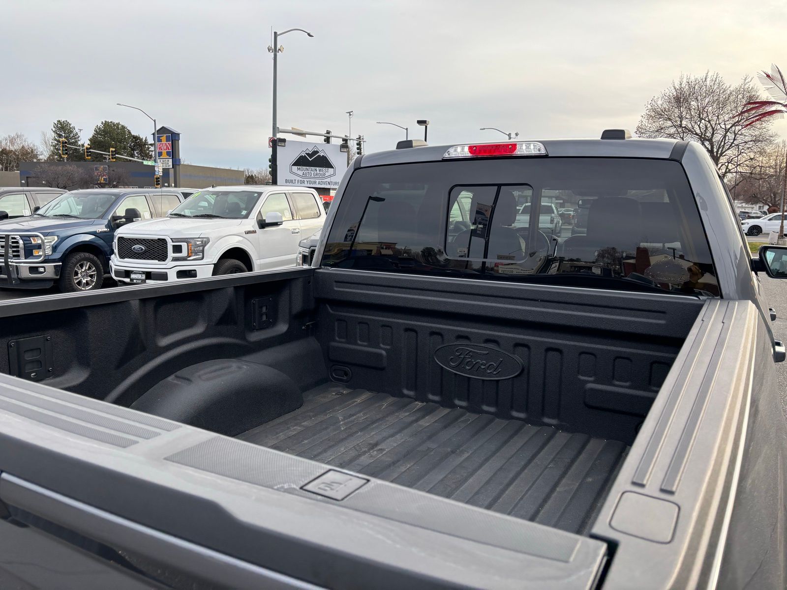 4WD 23/23 City/Highway MPG 10-Speed Automatic 4D SuperCrew Clean CARFAX. 3.5L PowerBoost Full-Hybrid V6 3.5L PowerBoost Full-Hybrid V6, 4WD, 2nd Row Heated Seats, ABS brakes, Alloy wheels, Compass, Connected Built-In Navigation, Electronic Stability Control, Equipment Group 502A High, Evasive Steering Assist, Ford Co-Pilot360 Assist 2.0, Front dual zone A/C, Heated door mirrors, Heated front seats, Illuminated entry, Intelligent Adaptive Cruise Control w/Stop & Go, Intersection Assist, LED Projector w/Dynamic Bending Headlamps, Low tire pressure warning, Power Tilt/Telescoping Steering Column w/Memory, Rain-Sensing Wipers, Remote keyless entry, Speed Sign Recognition, Traction control, Twin Panel Moonroof, Wheels: 20" Chrome-Like PVD, Wireless Charging Pad. F-150 Gray 2023 2023 Ford F-150 Lariat Lariat Ford