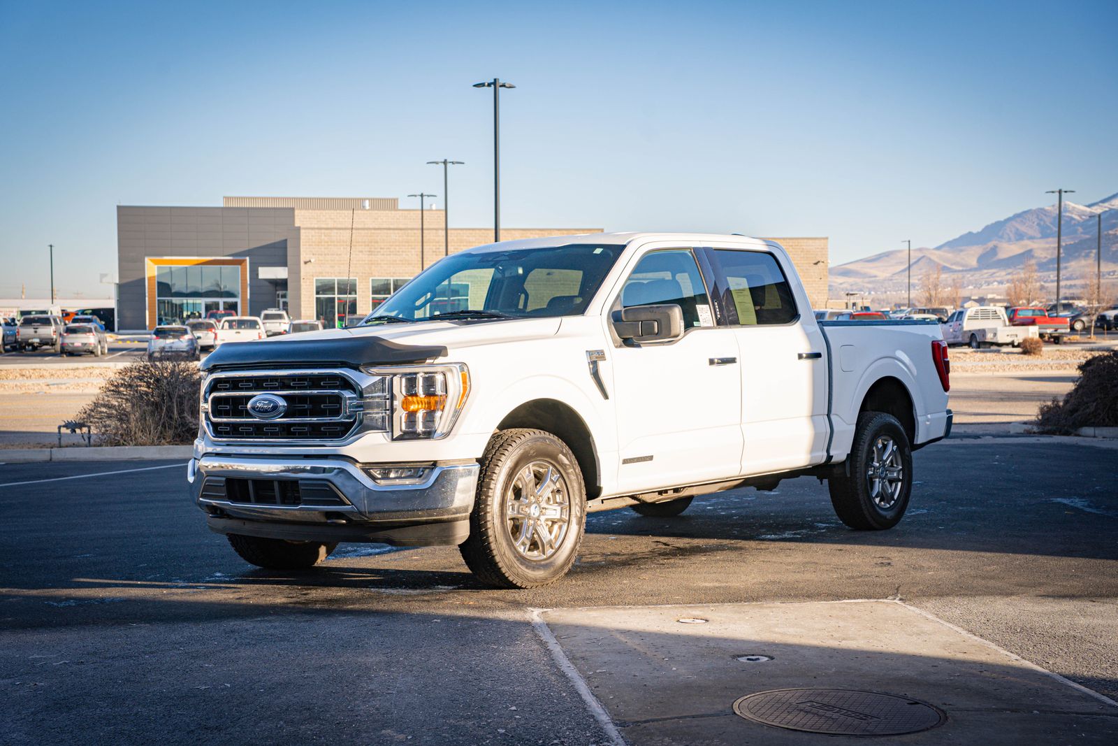 4WD 4D SuperCrew Clean CARFAX. 2023 Ford F-150 XLT 2023 10-Speed Automatic 3.5L PowerBoost Full-Hybrid V6, 4WD, 10-Way Power Driver & Passenger Seats, 8" Productivity Screen in Instrument Cluster, ABS brakes, Alloy wheels, Class IV Trailer Hitch Receiver, Compass, Dual Zone Electronic Automatic Temperature Control, Electronic Stability Control, Equipment Group 302A High, Heated door mirrors, Heated Front Seats, Illuminated entry, Integrated Trailer Brake Controller, Intelligent Access w/Push Button Start, LED Reflector Headlamps, LED Sideview Mirror Spotlights, Low tire pressure warning, Onboard 400W Outlet, Power Glass Heated Sideview Mirrors, Pro Trailer Backup Assist & Pro Trailer Hitch Assist, Rear Under-Seat Storage, Remote keyless entry, Remote Start System w/Remote Tailgate Release, SYNC 4 w/Enhanced Voice Recognition, Traction control, Trailer Tow Package, Wrapped Steering Wheel, XLT Chrome Appearance Package, Zone Lighting. XLT Ford F-150 3.5L PowerBoost Full-Hybrid V6 White 23/23 City/Highway MPG
