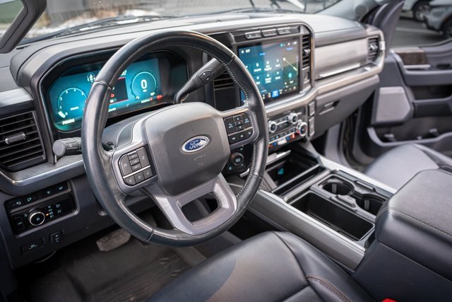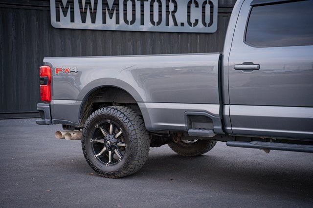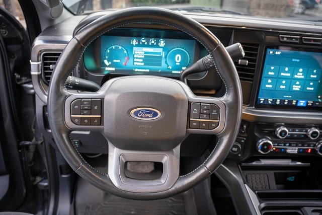 4WD 4D Crew Cab Clean CARFAX. 2023 Ford F-250SD Lariat 2023 10-Speed Automatic 4WD, ABS brakes, Alloy wheels, Compass, Electronic Stability Control, Front dual zone A/C, Heated door mirrors, Heated front seats, Heated rear seats, Illuminated entry, Low tire pressure warning, Remote keyless entry, Traction control. Lariat Ford F-250SD Power Stroke 6.7L V8 DI 32V OHV Turbodiesel Carbonized Gray Metallic
