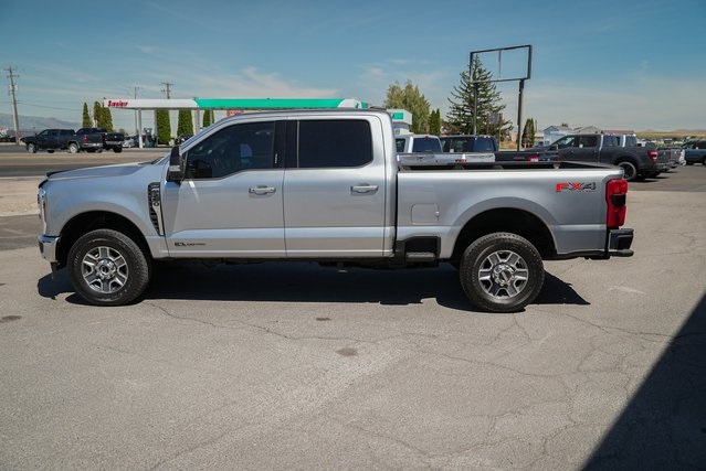 Clean CARFAX. 4D Crew Cab Iconic Silver Metallic 4WD Power Stroke 6.7L V8 DI 32V OHV Turbodiesel Ford F-250SD Lariat 4WD, Electronic-Locking w/3.55 Axle Ratio, FX4 Off-Road Package, High Capacity 11.6" Axle Upgrade Package, Hill Descent Control, Off-Road Specifically Tuned Shock Absorbers, Order Code 608A, Unique FX4 Off-Road Box Decal. 2024 10-Speed Automatic 2024 Ford F-250SD Lariat