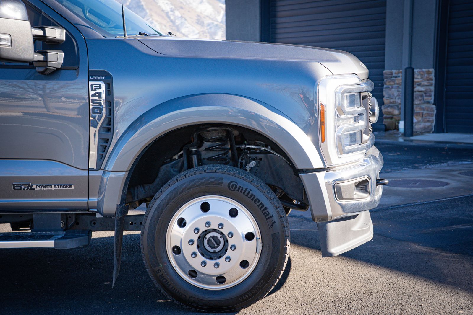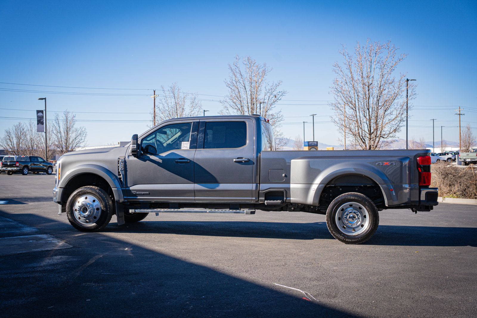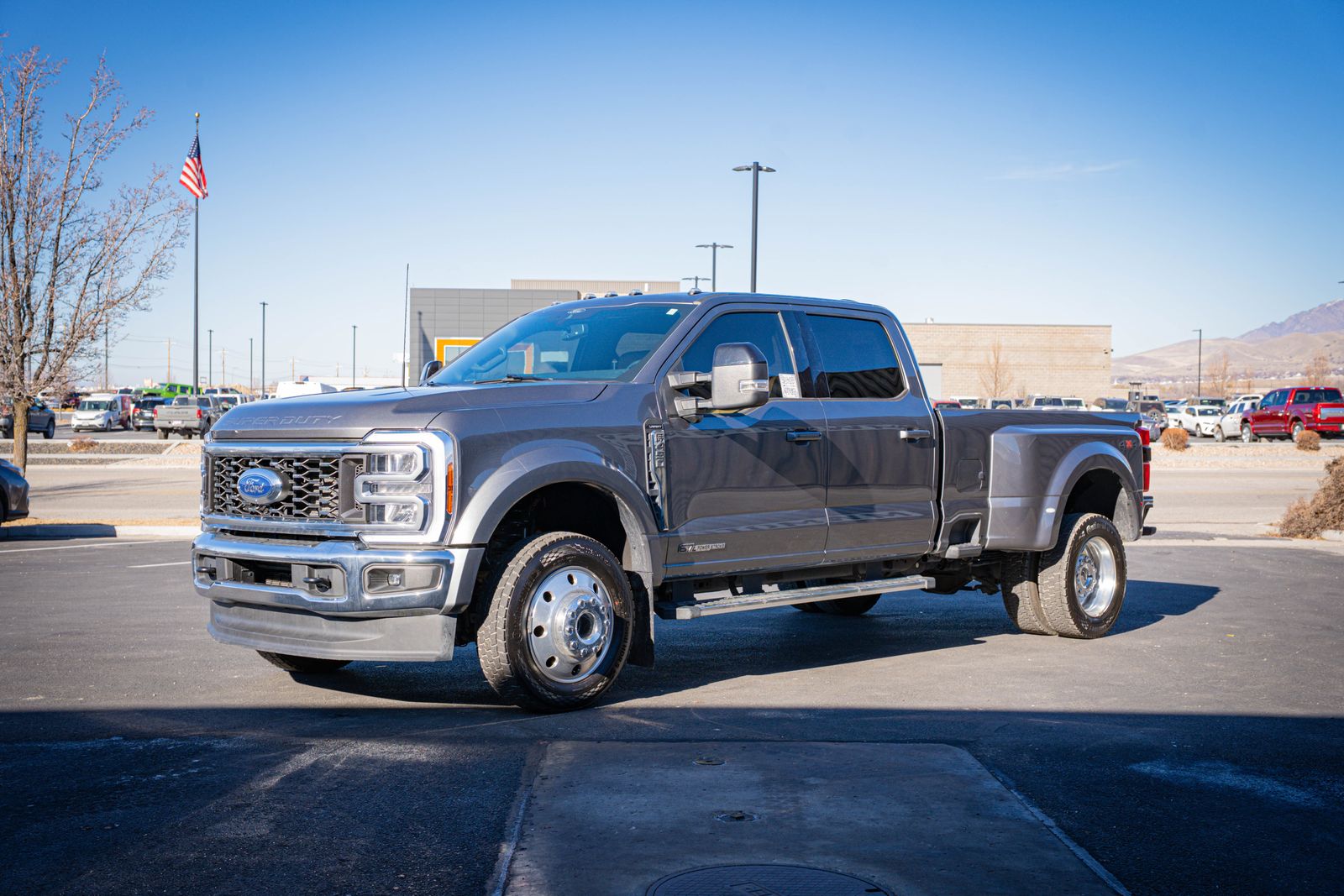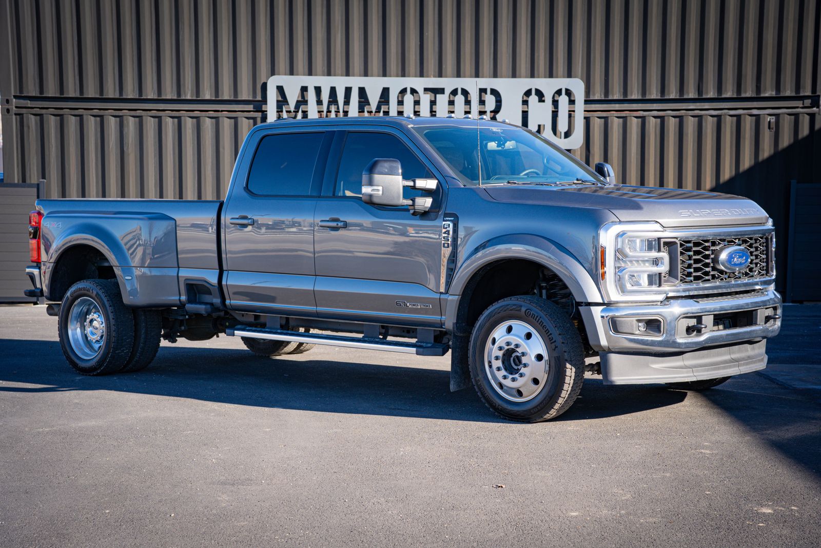 4WD 4D Crew Cab Clean CARFAX. 2025 Ford F-450SD Lariat DRW 2025 10-Speed Automatic 4WD, 19.5" Forged Polished Aluminum Wheels, ABS brakes, Alloy wheels, Compass, Electronic Stability Control, Front ActiveX Trimmed 40/Console/40 Seats, GVWR: 14,000 Lb Payload Package, Heated door mirrors, Illuminated entry, Limited Slip with 4.30 Axle Ratio, Order Code 678A, Radio: B&O Sound System by Bang and Olufsen, Remote keyless entry, SYNC 4, Traction control. Lariat DRW Ford F-450SD Power Stroke 6.7L V8 DI 32V OHV Turbodiesel Gray