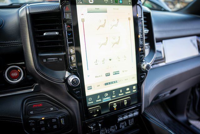 CARFAX One-Owner. Clean CARFAX. 4D Crew Cab Billet Silver Metallic Clearcoat 15/21 City/Highway MPG 4WD 3.0L I6 Ram 1500 RHO 12-Way/1-Way Trailer Connector, 14.4" Touchscreen Display, 240 Amp Alternator, 4G LTE Wi-Fi Hot Spot, Apple CarPlay, Connected Travel & Traffic Services, Connectivity - US/Canada, Driver Power Seat Back Massage, Driver Seat Memory, Driver/Passenger Wrapped Assist Handles, Drowsy Driver Detection, Dual Wireless Charging Pad, Evasive Steer Assist, Exterior Mirrors w/Memory, Front Passenger Interactive Display, Front Passenger Power Seat Back Massage, Full Length Premium Upgraded Floor Console, Google Android Auto, GPS Navigation, Hands-Free Active Driving Assist System, harman/kardon 19 Speaker Premium Sound, HD Radio, Heads-Up Display, Heated Second Row Seats, Integrated Voice Command w/Bluetooth, Intersection Collision Assist System, Leather/Carbon Flat-Bottom Steering Wheel, LED CHMSL Lamp, Luxury Front Door Trim Panel, Power Adjustable Pedals w/Memory, Power Tailgate, Premium Wrapped I/P Bezel, Quick Order Package 22Y RHO, Radio: Uconnect 5 Nav w/14.4" Display, Radio/Driver Seat/Mirrors/Pedals Memory, Rain Sensitive Windshield Wipers, Real Carbon Fiber Interior Accents, Rear 60/40 Folding Split Recline Seat, RHO Level 1 Equipment Group, Smartphone As A Key Capable, Surround View Camera System, Traffic Sign Recognition, USB Host Flip, Ventilated Front Seats, Ventilated Rear Seats. 2025 8-Speed Automatic 2025 Ram 1500 RHO